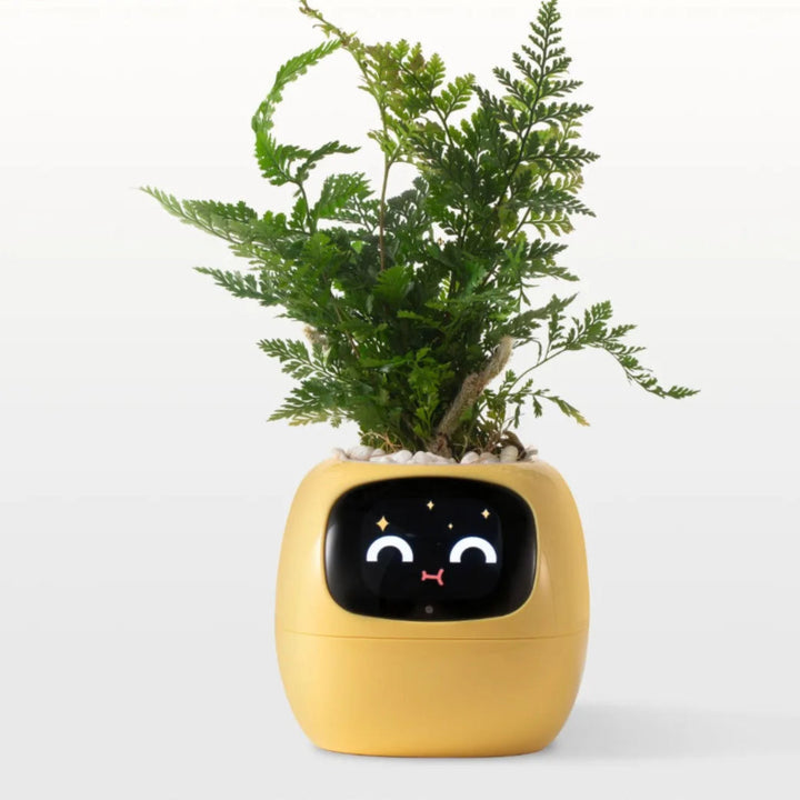 Découvrez Botany, le premier pot de fleurs interactif doté d’intelligence artificielle. Avec son écran expressif et ses capteurs intégrés, il interagit avec vous au quotidien pour vous rappeler d’arroser, vous signaler l’état de votre plante, ou simplement vous faire sourire.